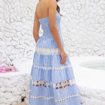 Elevate your wardrobe with this charming striped dress, featuring delicate flower trim detailing that adds a touch of feminine elegance. The layered design creates beautiful dimension and movement, perfect for any occasion. Whether you're dressing up for a special event or keeping it casual, this versatile piece delivers effortless style and sophistication!