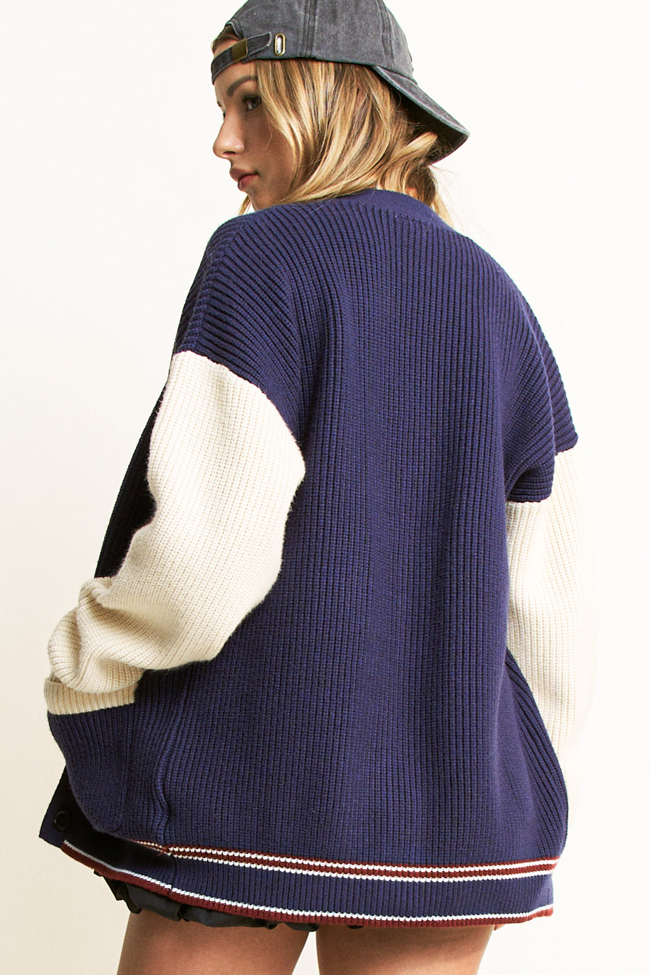 Elevate your wardrobe with the Stripe Ribbed Varsity Cardigan, blending classic varsity style with a modern ribbed texture for a flattering fit. This versatile cardigan offers cozy warmth and effortless layering, making it perfect for transitioning between seasons. Its bold stripes add a stylish edge, while the soft fabric ensures all-day comfort. Ideal for casual outings or layering over your favorite pieces, this cardigan combines timeless appeal with everyday practicality!