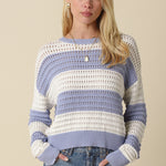 Elevate your wardrobe with this charming striped crochet sweater—a timeless piece that effortlessly blends texture and style. The intricate crochet detailing creates visual interest while the classic stripes keep it versatile enough to pair with anything. Cozy, chic, and undeniably wearable, this sweater is the perfect addition to your everyday collection!