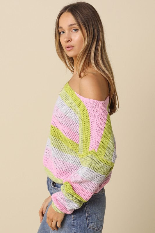 Effortlessly chic and undeniably comfortable, this striped wide neck knit sweater is your go-to piece for elevated everyday style. The relaxed neckline flatters every frame while the classic stripe pattern adds visual interest to any outfit. Perfect for layering or wearing solo, this versatile sweater transitions seamlessly from casual weekends to polished work days!