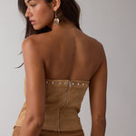 Elevate your style with this Suede Corset featuring edgy stud detailing. The soft suede fabric shapes and supports your silhouette, while the stud accents add a bold, fashionable touch. Perfect for making a statement day or night, this corset blends comfort with standout design to enhance your wardrobe!