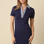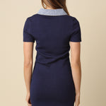 Cozy sweater dress with crisp denim contrast at the cuffs and hem. The modern two-tone design transitions effortlessly from casual to polished, and works beautifully layered or worn alone. Soft, comfortable, and endlessly versatile.