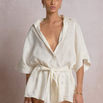 Effortlessly chic and vacation-ready, this tie waist romper combines comfort with style. The adjustable tie detail flatters your figure while the relaxed silhouette keeps you cool and breezy. Perfect for beach days, resort dinners, or exploring new destinations—pack just one piece and look polished everywhere you go!
