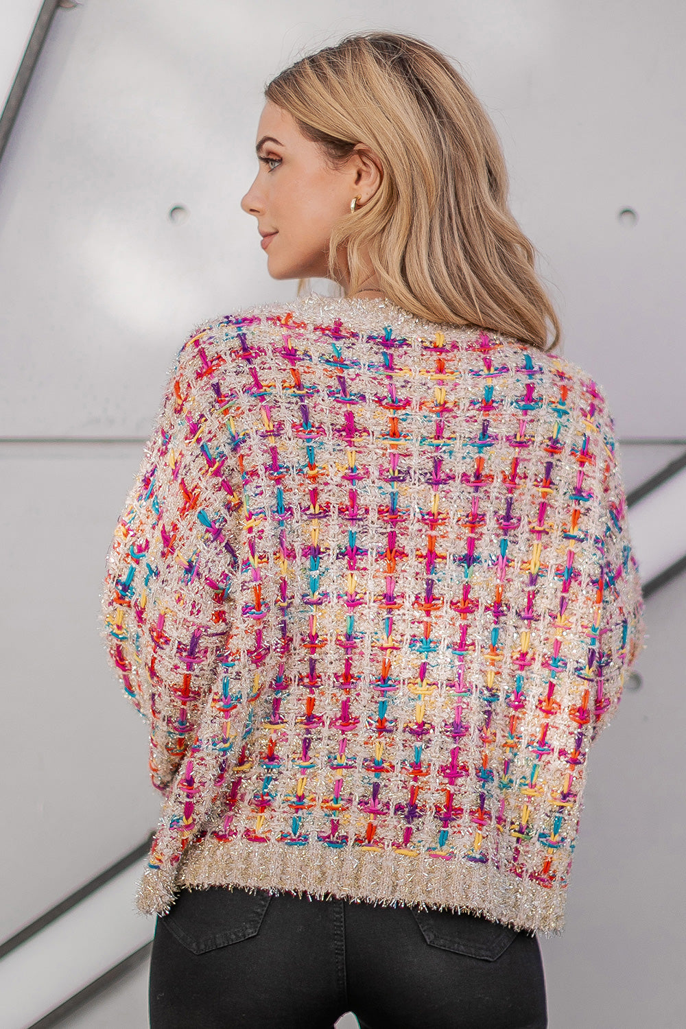 Stay stylish with the Tweed Pullover Knit Sweater. Its tweed design offers a timeless look! This versatile sweater pairs perfectly with jeans or skirts, making it an essential addition to your fall and winter wardrobe. Embrace cozy sophistication every day with this effortlessly chic pullover!