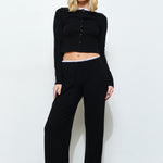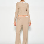 Experience effortless style and comfort with our Wide Leg Pant featuring a flattering waistband detail. Designed to flow gracefully, these pants offer a relaxed fit that moves with you while accentuating your silhouette. Pair them with the matching cardigan to complete your lounge look, combining cozy elegance with modern sophistication for all-day wear!