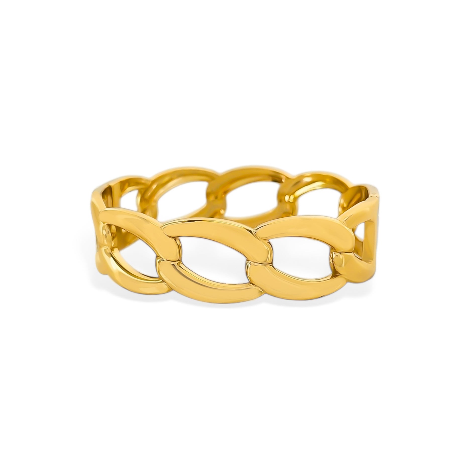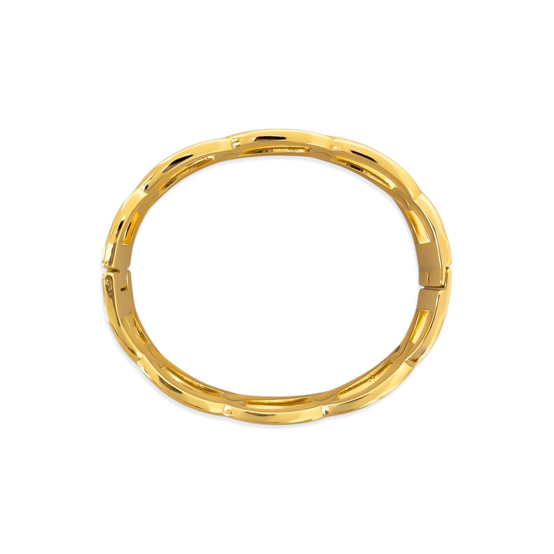 This bold Wide Link Gold Bracelet features oversized oval links with a sleek, polished finish that radiates luxury. Its classic chain link design makes it a versatile statement piece.