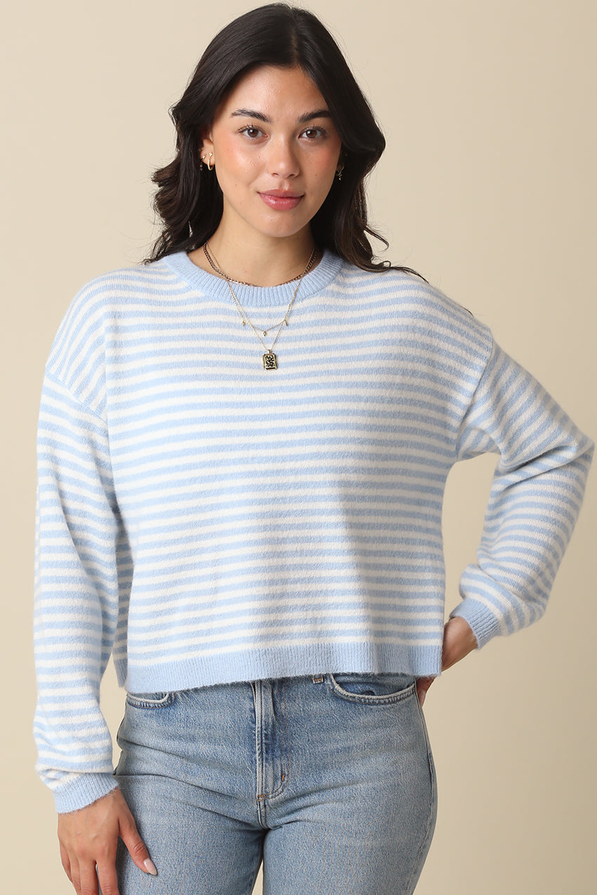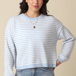 Layer this wool knit stripe sweater into your spring rotation for effortless style and comfort. The breathable wool construction keeps you cozy without overheating, while the timeless stripe design pairs with everything in your closet!
